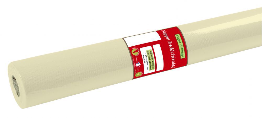 Magnifique nappe intissée Ivoire de fabrication Française. Matière souple et résistante avec un tombé parfaite. - Dimension: 1.20x20M - Matière: intissé, indéchirable - Couleur: Ivoire